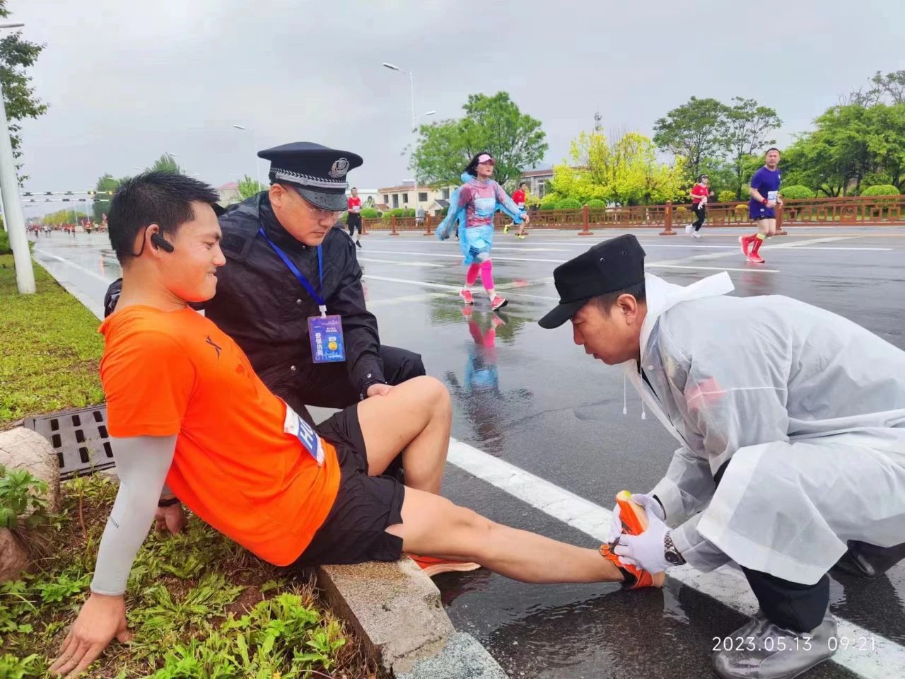 馬拉松賽事當(dāng)天,由于天氣變化下起小到中雨并伴隨氣溫下降,執(zhí)勤隊(duì)員頂風(fēng)冒雨,傲然屹立,很多隊(duì)員衣服被雨澆濕了、鞋子被水浸透了,但他們始終保持著良好的執(zhí)勤姿態(tài)和形象,履行著自己的崗位職責(zé),全力維護(hù)現(xiàn)場(chǎng)秩序,受到了各級(jí)領(lǐng)導(dǎo)、賽事單位、參賽跑友和廣大人民群眾的一致好評(píng)。